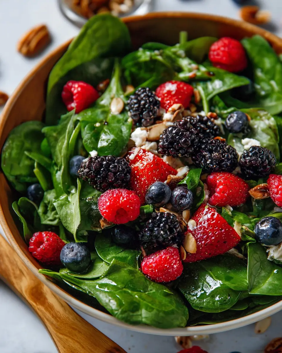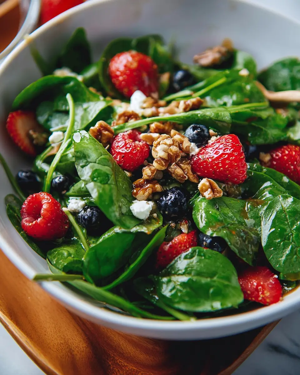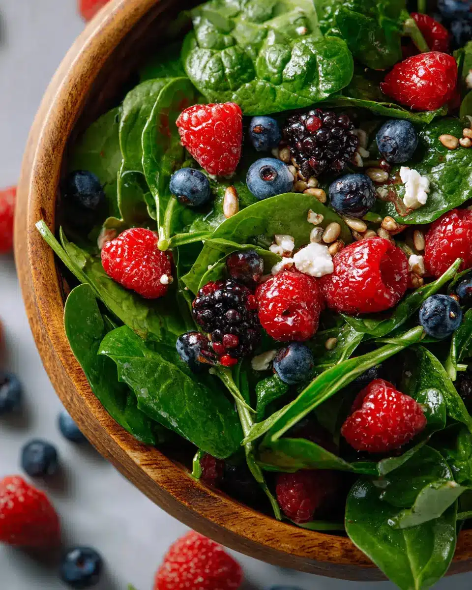 To elevate your berry spinach salad, always choose the freshest ingredients. Select bright, vibrant baby spinach with no wilted leaves. For the berries, opt for plump and firm raspberries, blueberries, or strawberries with a sweet fragrance. You can refer to this guide on choosing fresh produce for extra tips.