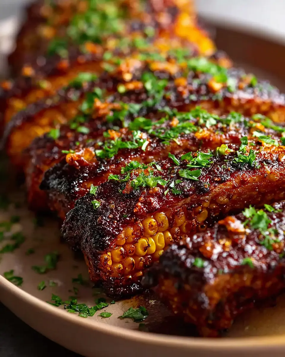 You’ll spend around 30 minutes cooking these delicious corn ribs. Whether you choose to grill or bake, the process is quick, so you won’t be waiting long to savor this dish.