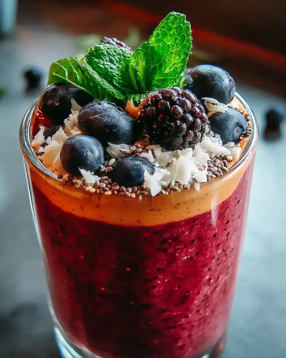 With the addition of chia seeds and mixed berries, this breakfast smoothie boasts a healthy dose of fiber—approximately 5 grams per serving. Fiber aids in digestion and helps maintain stable blood sugar levels, promoting long-lasting energy throughout your busy morning.