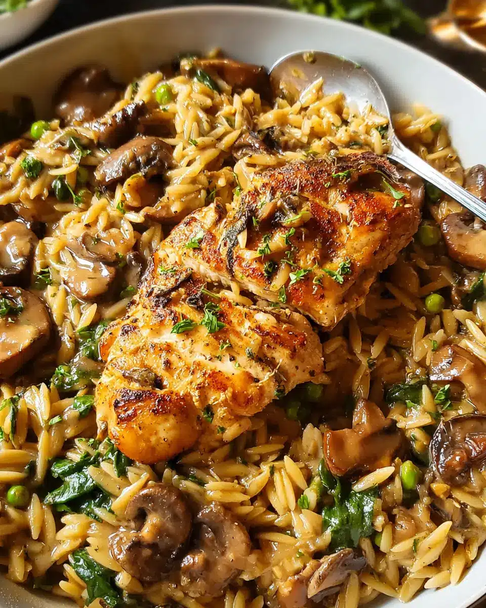 Chicken Marsala with Creamy Spinach & Pea Orzo
