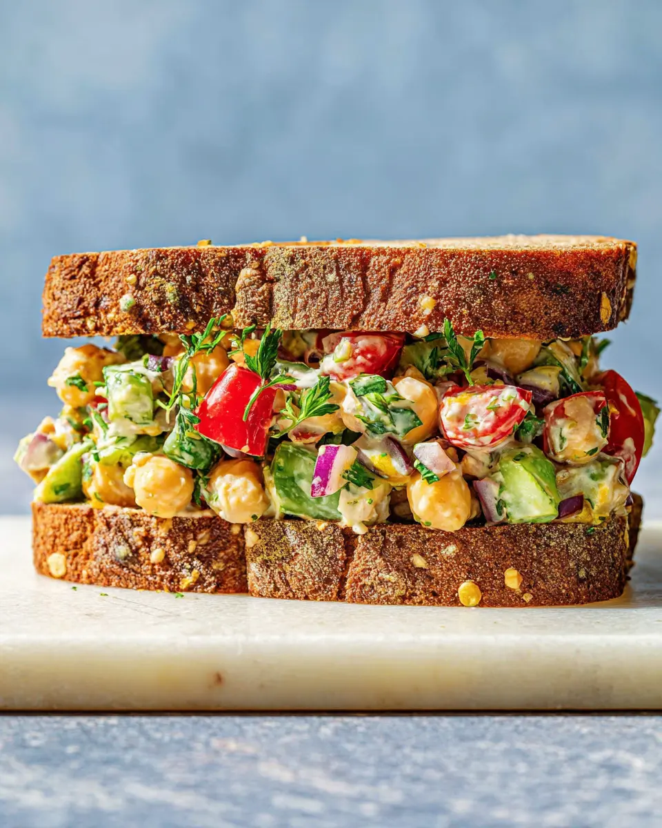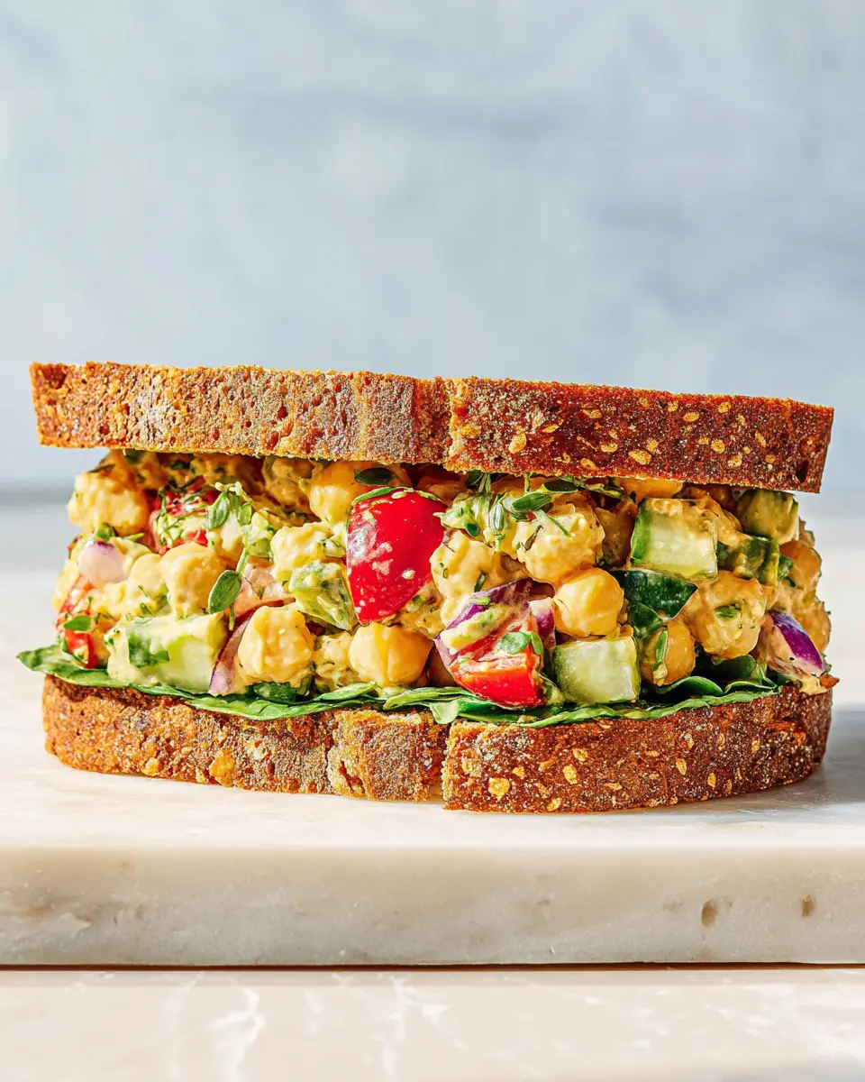 For a detailed recipe, check out our full Chickpea Salad Sandwich with Fresh Veggies and Herbs article.