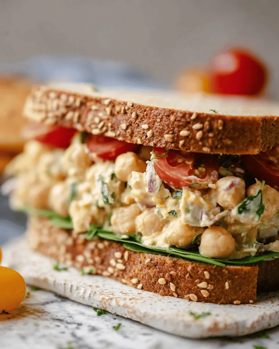 And voilà! Your tasty chickpea salad sandwich is ready to be enjoyed. It’s not just a meal; it’s a wholesome hug between two slices of bread. Perfect for a busy weekday lunch or a quick snack. Bon appétit!