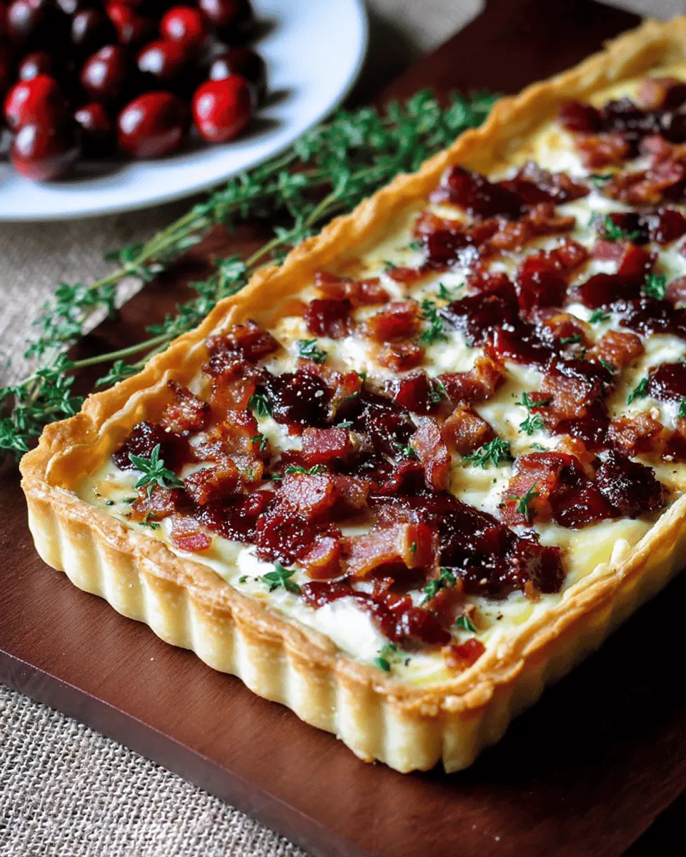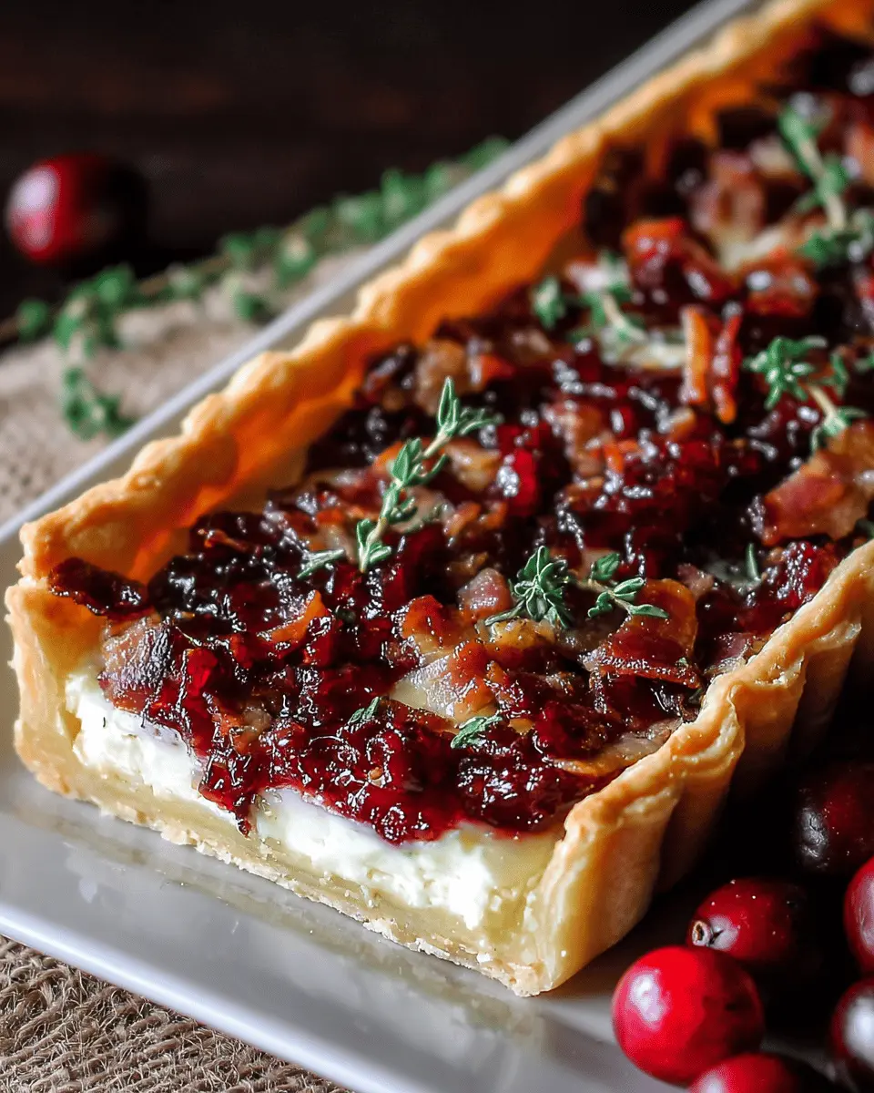 In summary, this Cranberry Brie Tart with Pancetta & Thyme is a must-try for your next gathering! Its unique blend of flavors and textures makes it a standout appetizer. Plus, its ease of preparation means you can spend less time in the kitchen and more time enjoying the company of friends and family. So, roll up your sleeves, indulge your culinary creativity, and treat your taste buds!
