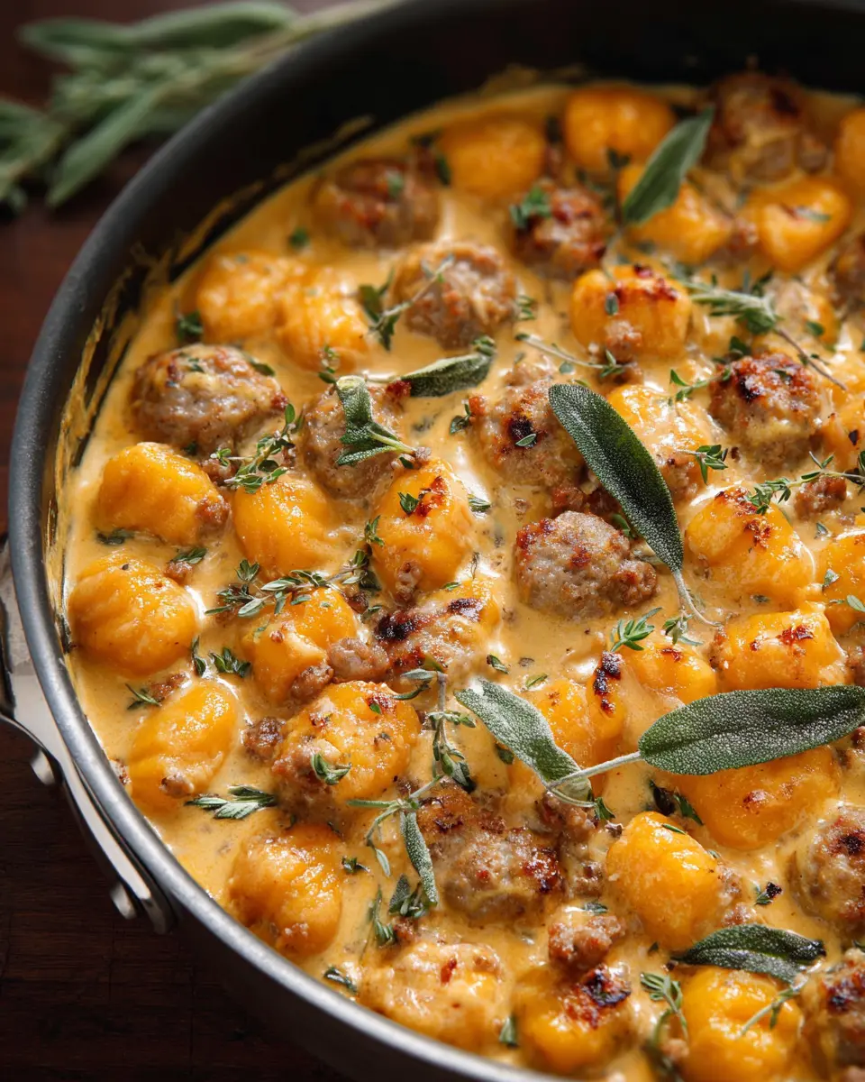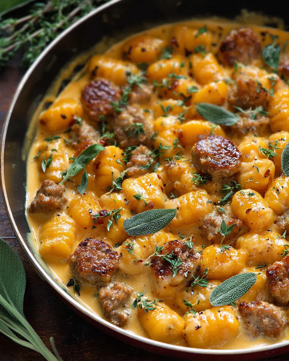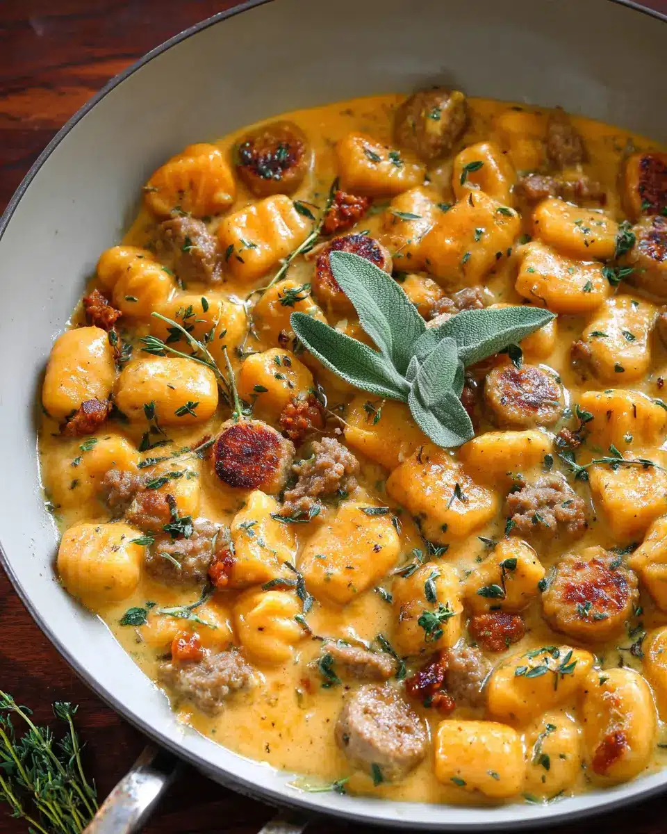 Creamy Butternut Squash Gnocchi with Sausage, Thyme, and Sage