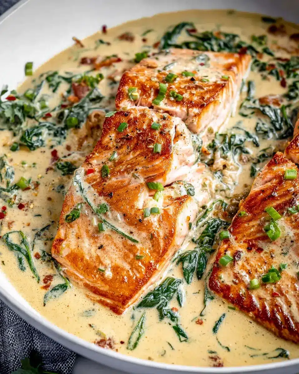 Finally, it’s time for the star of the dish to make its return. Carefully place the salmon back into the skillet, spooning the creamy sauce over the fillets. Let everything meld together for another minute or two. The end goal? A comforting dish that not only pleases the palate but also your senses. Serve your Creamy Garlic Butter Tuscan Salmon over pasta, rice, or your favorite veggies, and watch your loved ones rave!
