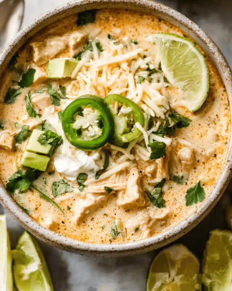 Elevate your creamy white chicken chili with toppings that pack a punch. Consider: