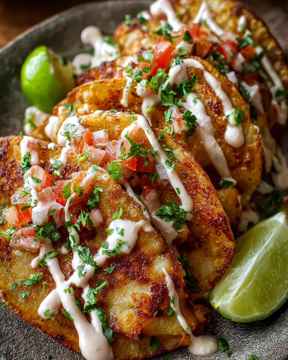 Crispy Potato and Bean Tacos with Spicy Ranch Dip