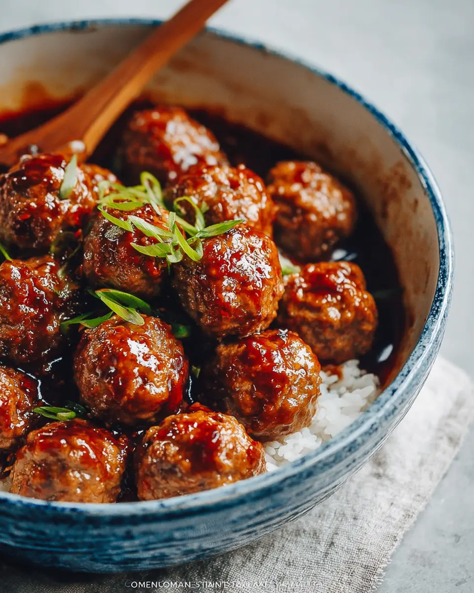 Garnish with sliced green onions to finish. Serve these delicious meatballs hot, ideally over steamed rice, and watch them vanish in no time!