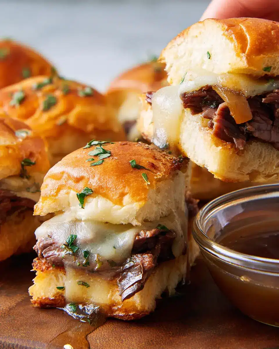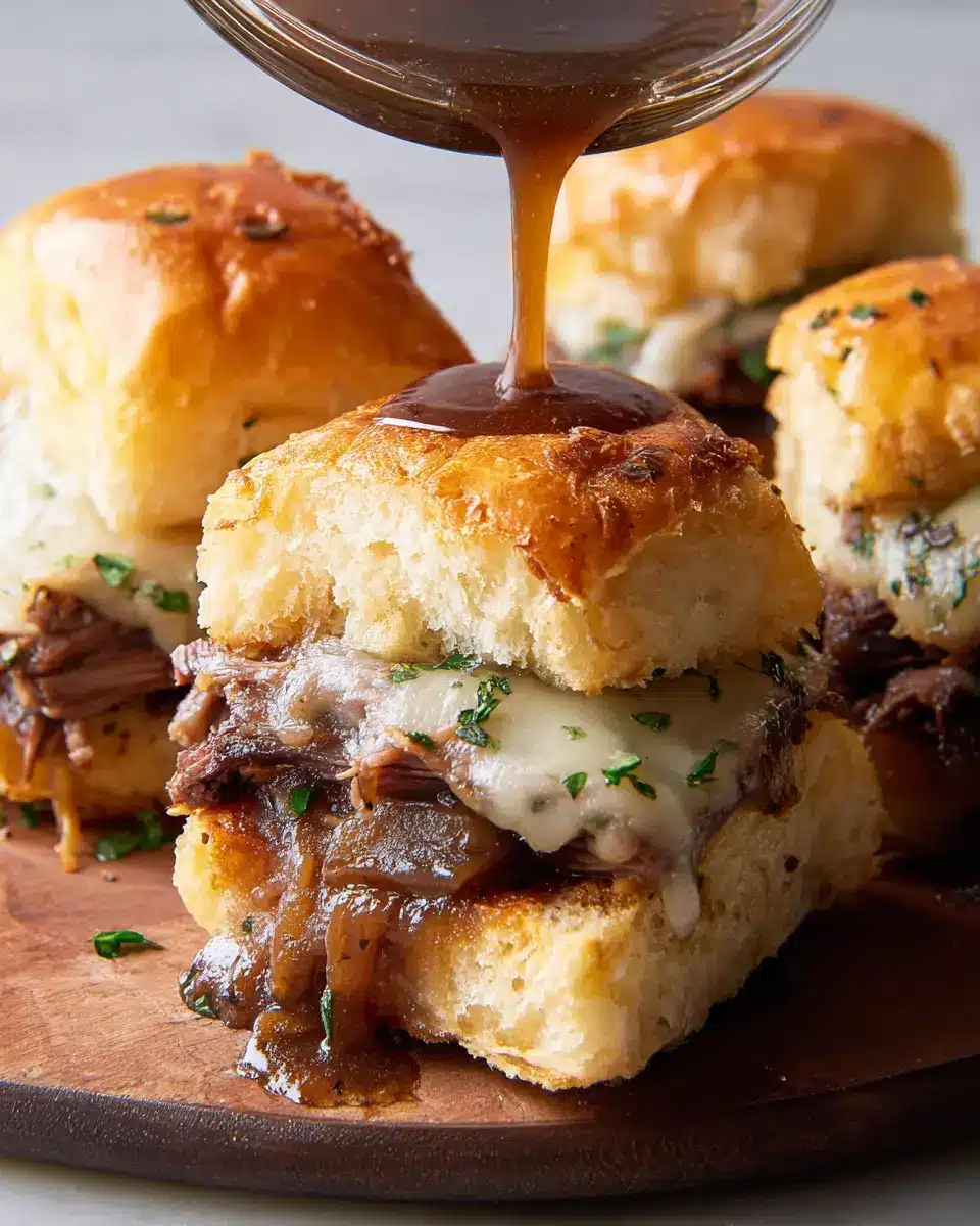 To elevate your French Dip Sliders, consider adding a sprinkle of smoked paprika or a dash of hot sauce to the roast beef for a savory kick. Fresh herbs like rosemary or a bit of Dijon mustard can also add a delightful depth. Don’t forget to use high-quality beef broth—brands like Better Than Bouillon can make a world of difference!