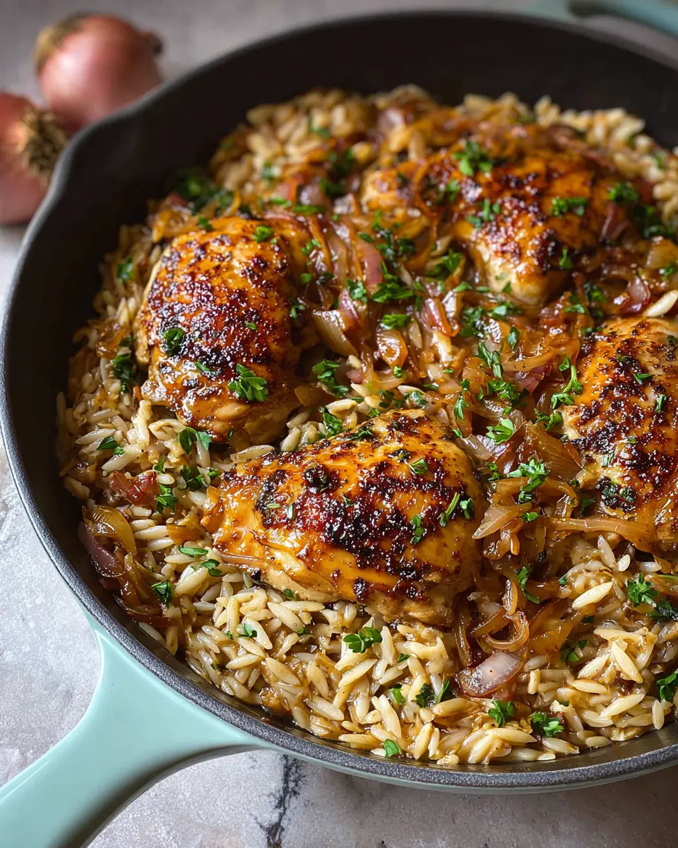 In summary, French Onion Chicken & Orzo is not just a meal—it's a delightful experience filled with rich, savory flavors that warm the soul. Perfect for busy weeknights or impressing guests, this one-pan wonder invites you to savor every bite. Give it a try—you won't be disappointed!