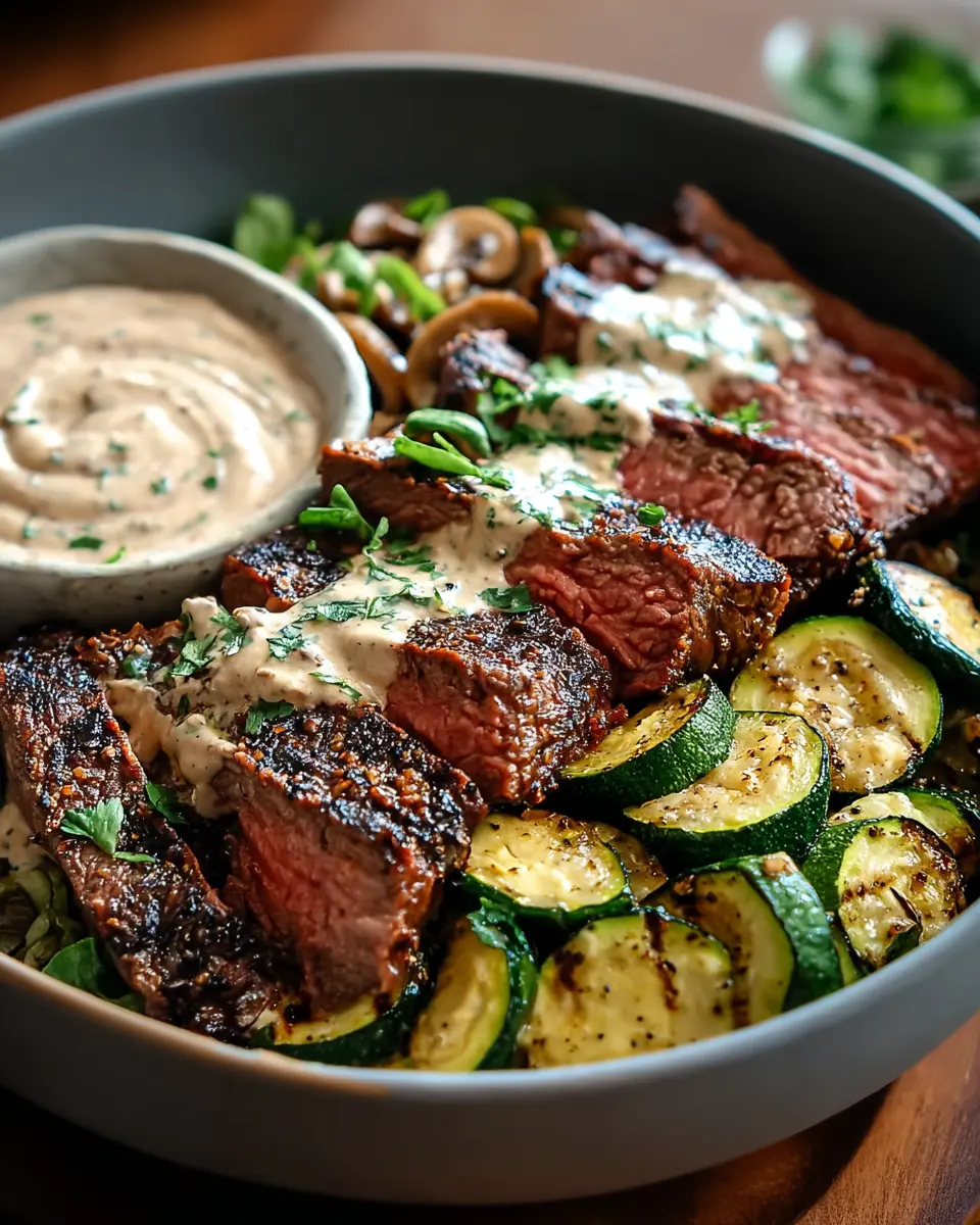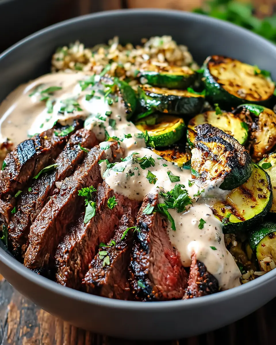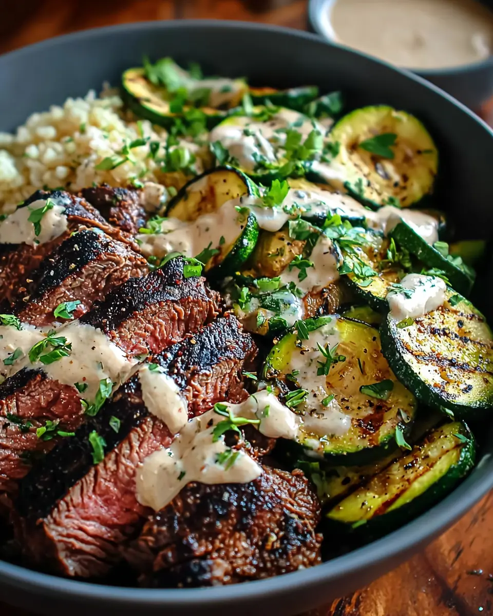 Introduction to Grilled Steak Creamy Zucchini Bowl