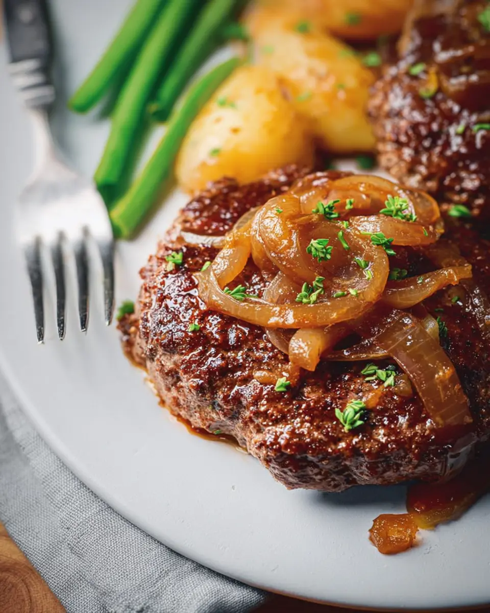 In conclusion, hamburger steak aux oignons offers a delightful fusion of flavors, perfect for a cozy weeknight dinner. It’s an easy, budget-friendly option that’s sure to please. Give this recipe a try, and elevate your culinary skills with classic French inspiration in your kitchen. Enjoy the cooking journey!