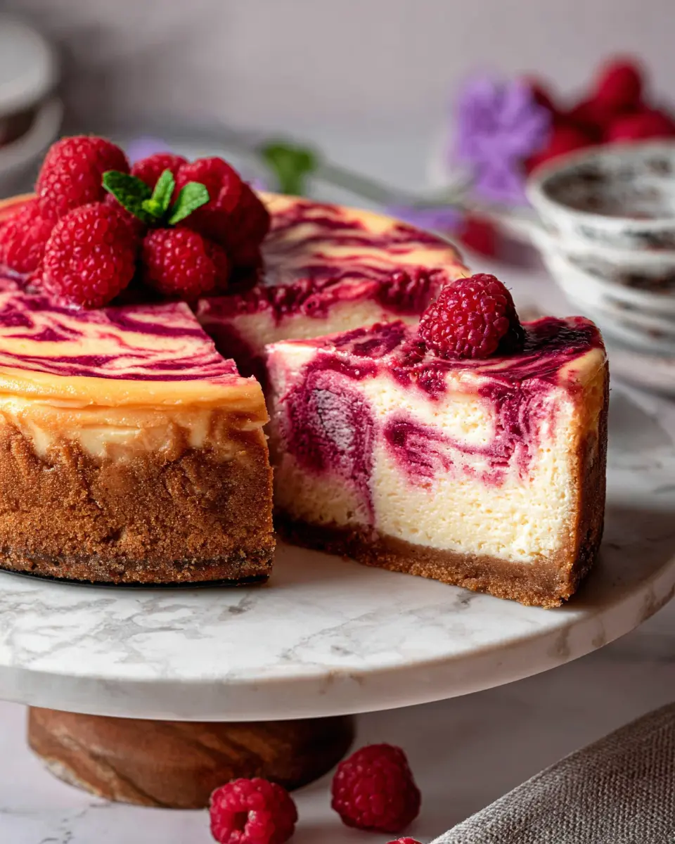 Crafting dishes like this Raspberry Swirl Cheesecake offers more than just satisfying your sweet tooth; it enriches your culinary skills and fosters healthy eating habits—qualities that fast food simply can't provide. Homemade cooking allows you to control ingredients and flavors, making mealtime far more satisfying. Enjoy every bite!