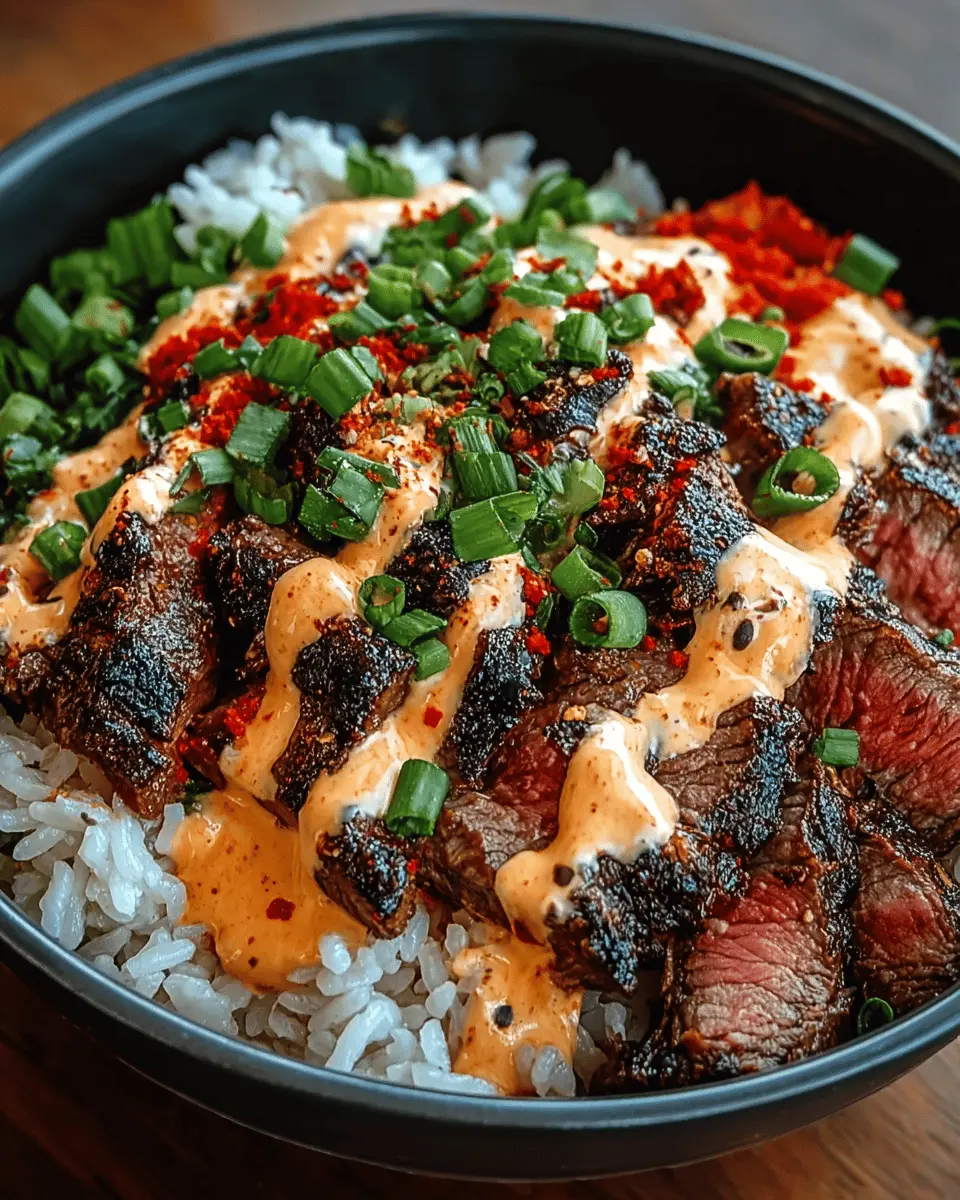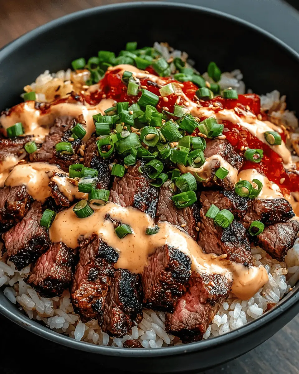 Korean BBQ Steak Rice Bowls with Spicy Cream Sauce