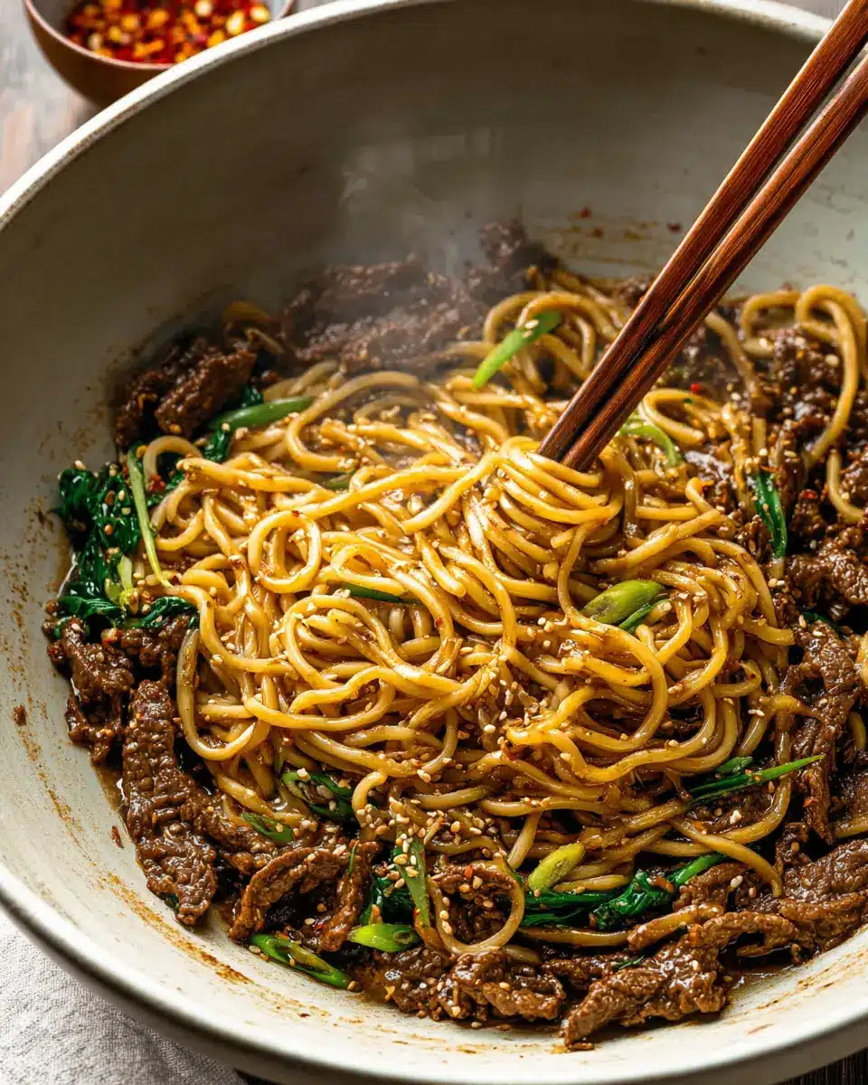 Serve hot, garnishing with sesame seeds or extra green onions if desired. Each bite of Korean Beef Noodles will transport you to the streets of Seoul—joyful and full of flavor! Enjoy your culinary adventure, and don’t forget to share your creations!