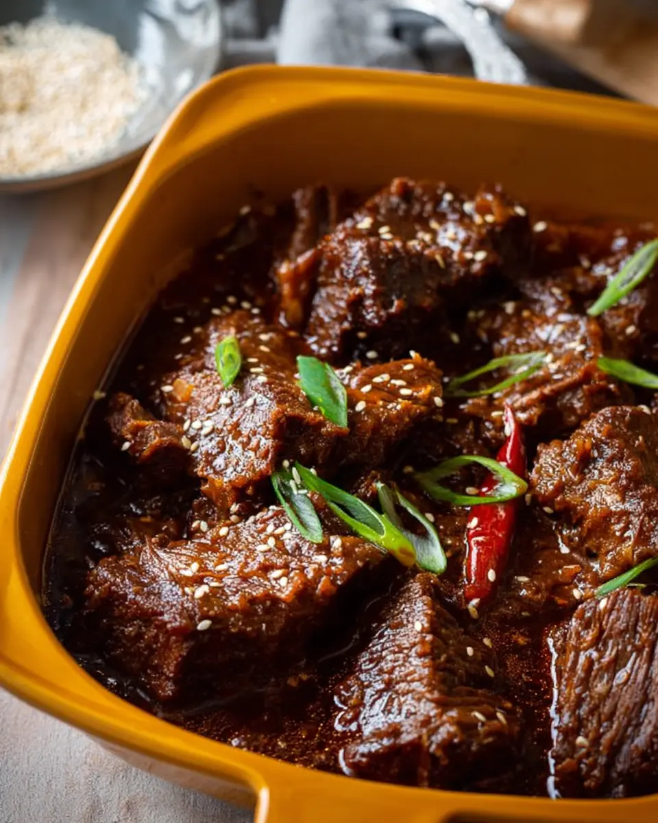 If you prefer a milder spice level, feel free to adjust the gochujang and garlic chili sauce to suit your taste. For added richness, serve the pot roast with steamed rice or creamy mashed potatoes, soaking up that flavorful sauce. Don’t forget to add a sprinkle of sesame seeds before serving for a bit of crunch and presentation.