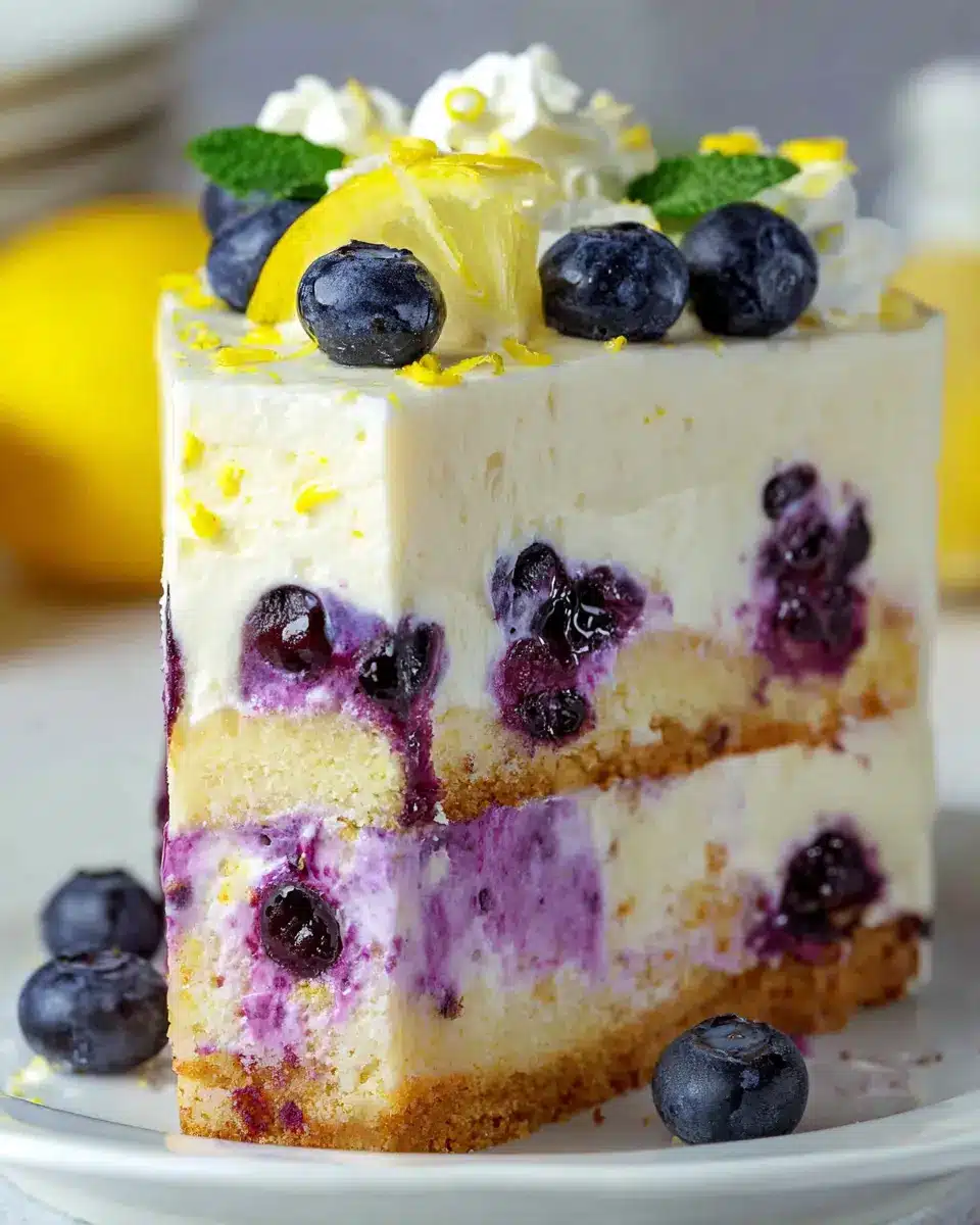 Imagine layers of fluffy lemon cake paired with a velvety blueberry cheesecake, all dressed in a smooth lemon cream cheese frosting. Each bite offers a sweet reminder of sunny days and fresh starts. The blueberries add bursts of color and sweetness while the lemon zest adds that refreshing citrus punch. You might even find this cake becoming your new favorite, and with its visually stunning presentation, it’s sure to impress friends and family.