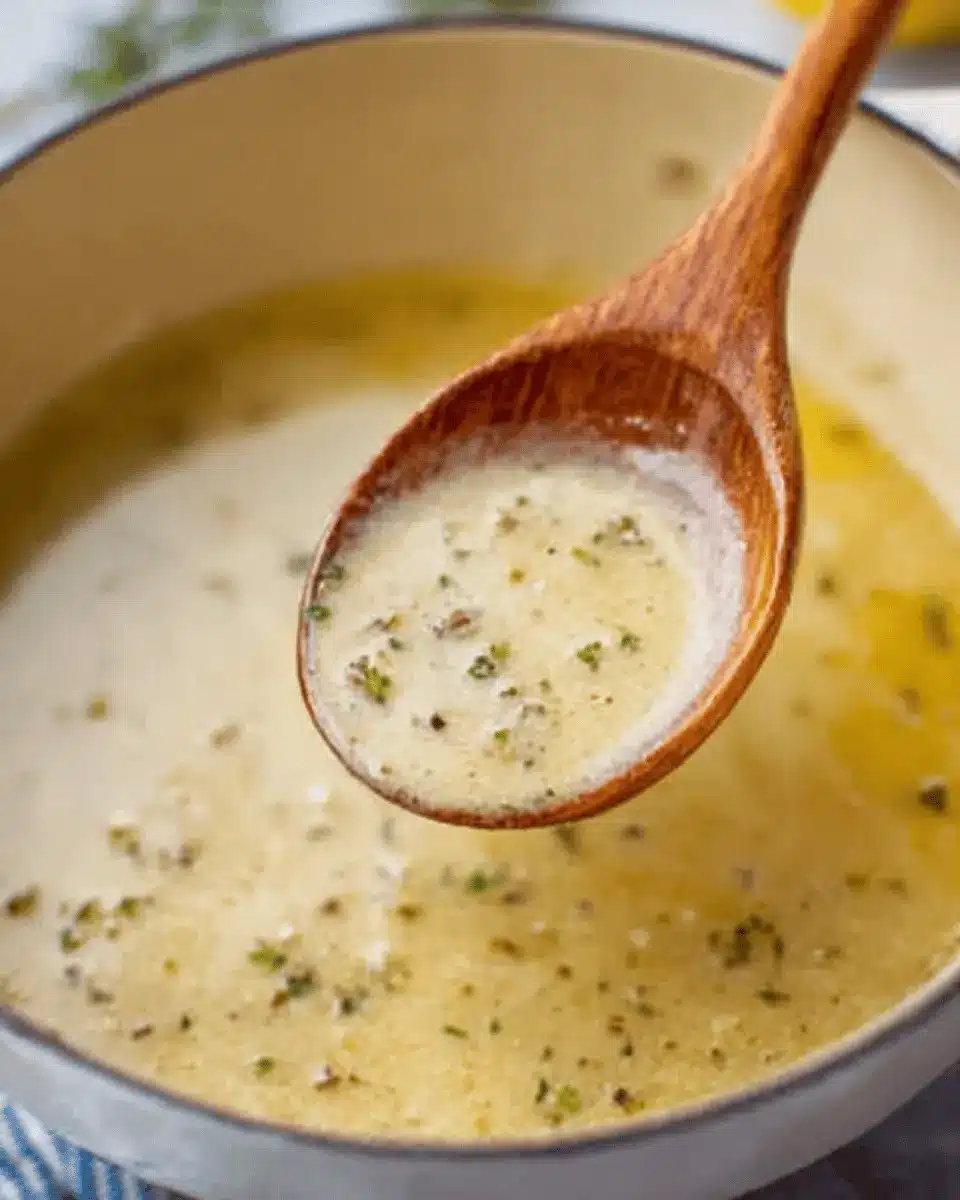 Once your broth and lemon juice are well combined, pour in your warmed cream or milk. Stir gently to incorporate everything. As the sauce heats up, you can add your dried thyme or Italian seasoning. Reduce the heat to medium-low, cover the pan with a lid, and let it simmer for about 10 minutes. This is when the flavors meld together beautifully.