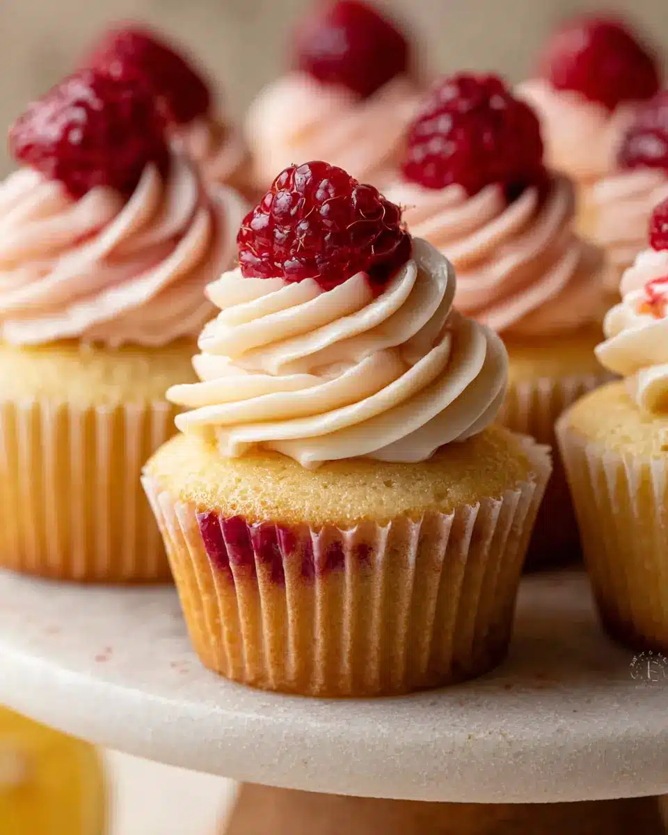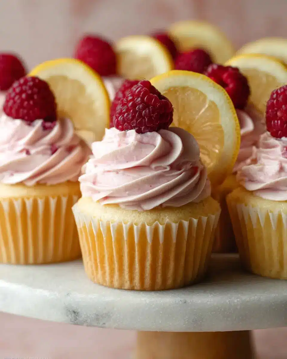 Finally, it’s time to frost your cupcakes! Use a piping bag fitted with your favorite tip to swirl the raspberry buttercream elegantly on top. For added flair, garnish each cupcake with fresh raspberries and a slice of lemon. This final touch provides not only a beautiful presentation but also a wonderful contrast in flavor.