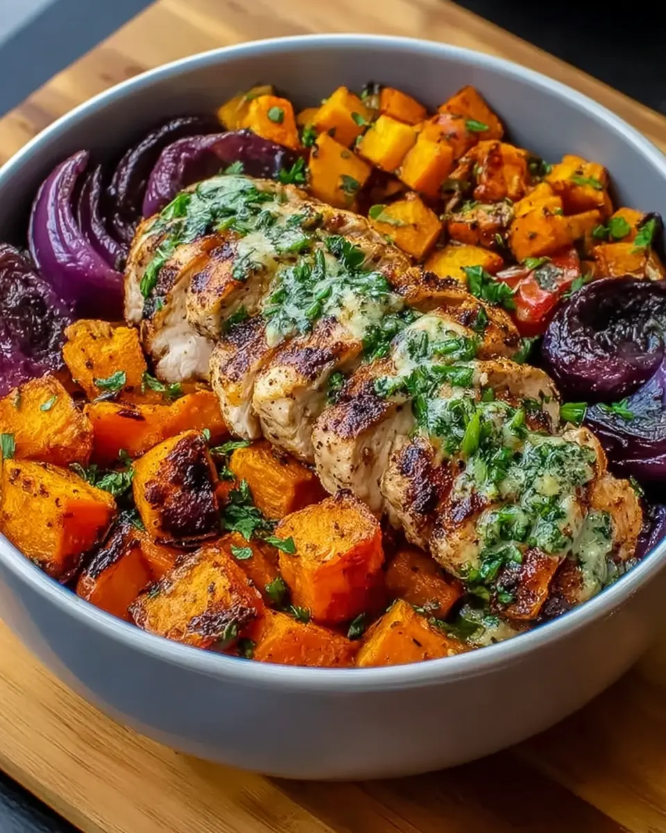 Maple Dijon Chicken Bowl with Roasted Sweet Potatoes & Veggies: An Amazing Ultimate Recipe