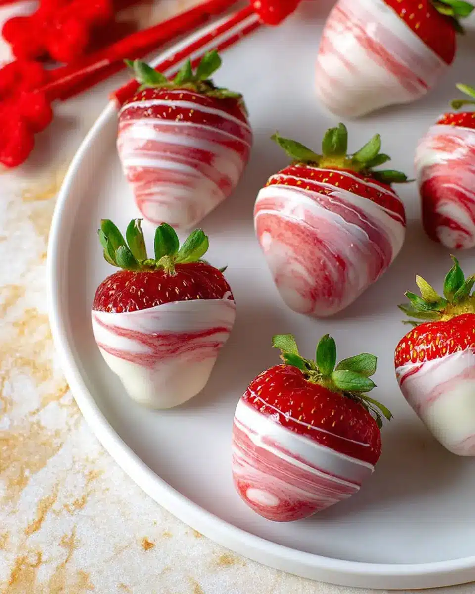 Marble dipped strawberries are packed with essential vitamins! The strawberries themselves provide a healthy dose of Vitamin C and antioxidants, which can support your immune system and overall health. For more on the benefits of strawberries, you can check out the Nutritional Information from the USDA.