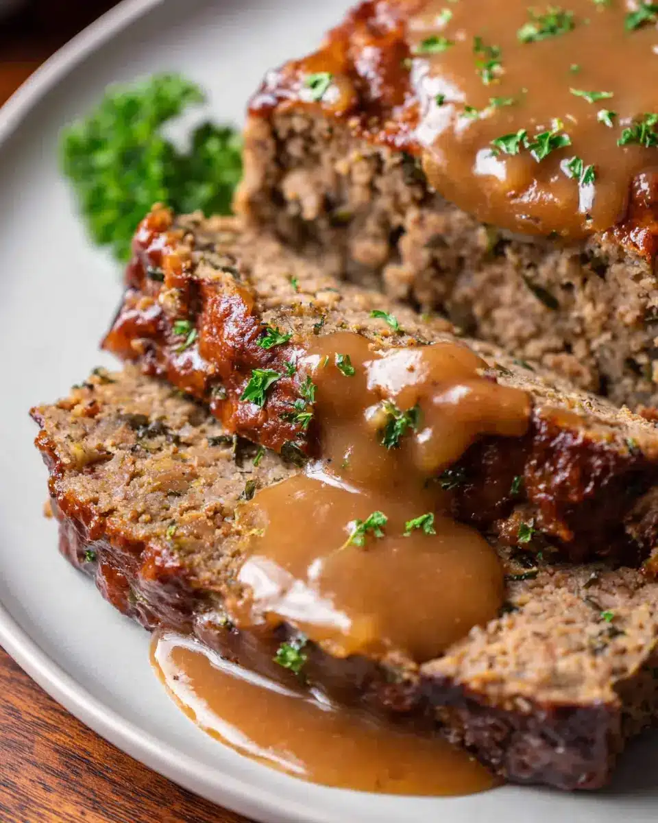Once everything is ready, slice your meatloaf and spoon that luscious gravy on top. Serve it alongside creamy mashed potatoes and steamed green beans for a comforting and balanced meal. This classic dish isn’t just filling; it’s bound to bring back warm memories of home-cooked goodness. So, are you ready to sink your teeth into a slice of homemade joy? Enjoy every bite!