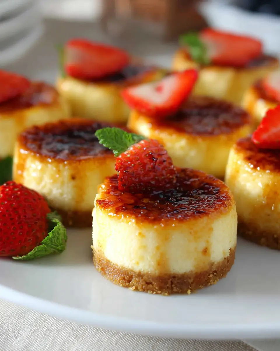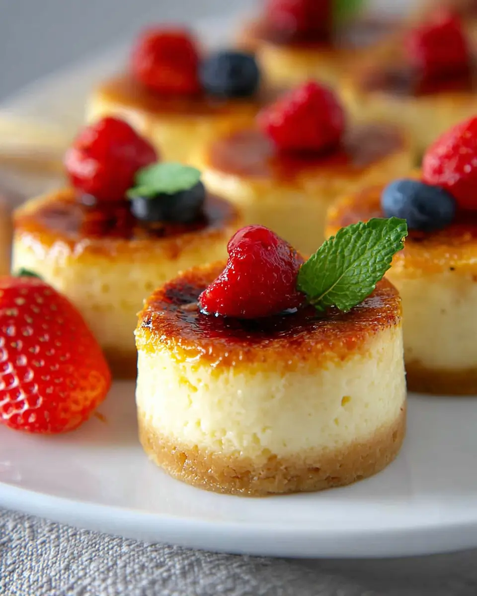 What makes mini crème brûlée cheesecakes a delightful dessert?