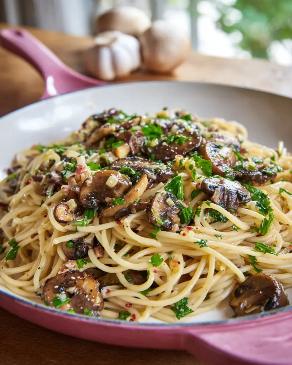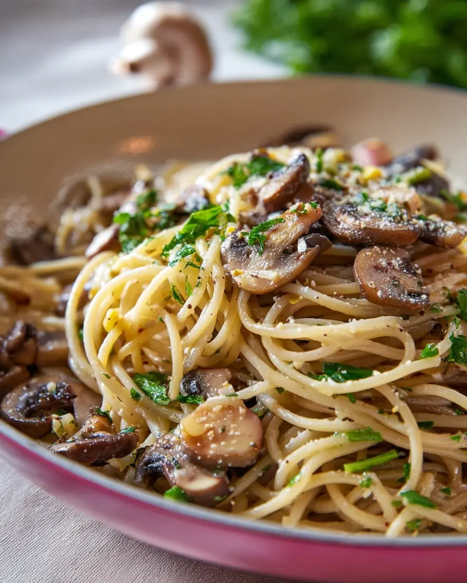When it comes to presentation, let’s get a little creative! Serve your Mushroom and Garlic Spaghetti in a shallow bowl, and generously sprinkle with extra Pecorino Romano cheese and freshly chopped parsley. You could even twirl the spaghetti using a fork and spoon to create a beautiful nest-like shape. Adding a few sautéed mushrooms on top as a garnish adds that finishing touch — your guests will be wowed! For more plating ideas, check out this guide on food presentation.