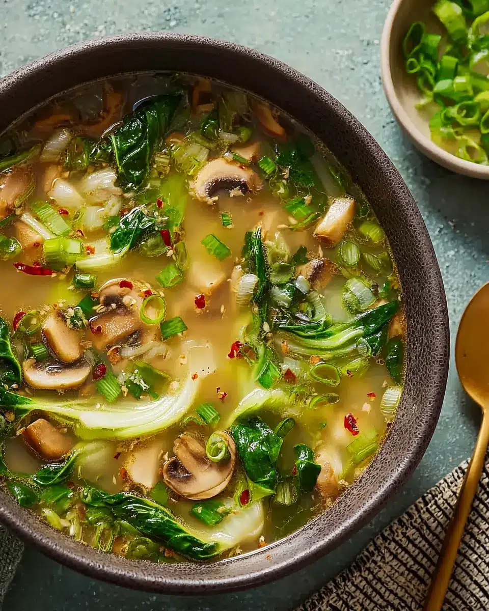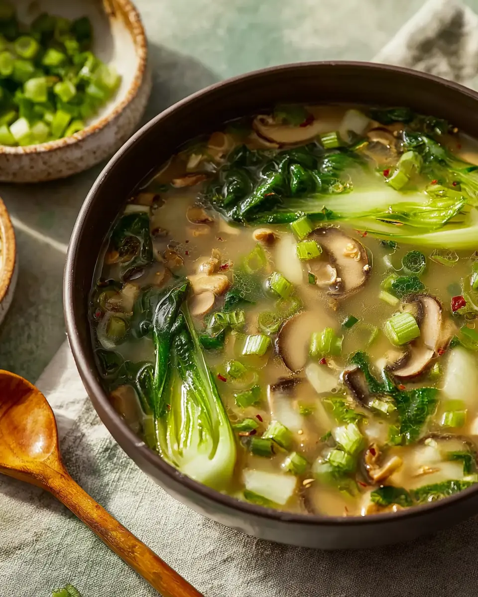 The Mushroom Bok Choy Soup not only offers a comforting, savory experience but also packs a nutritious punch, perfect for boosting your immune system. With its vibrant flavors and wholesome ingredients, it's ideal for any day of the week. Enjoy this revitalizing soup and feel its delightful effects!