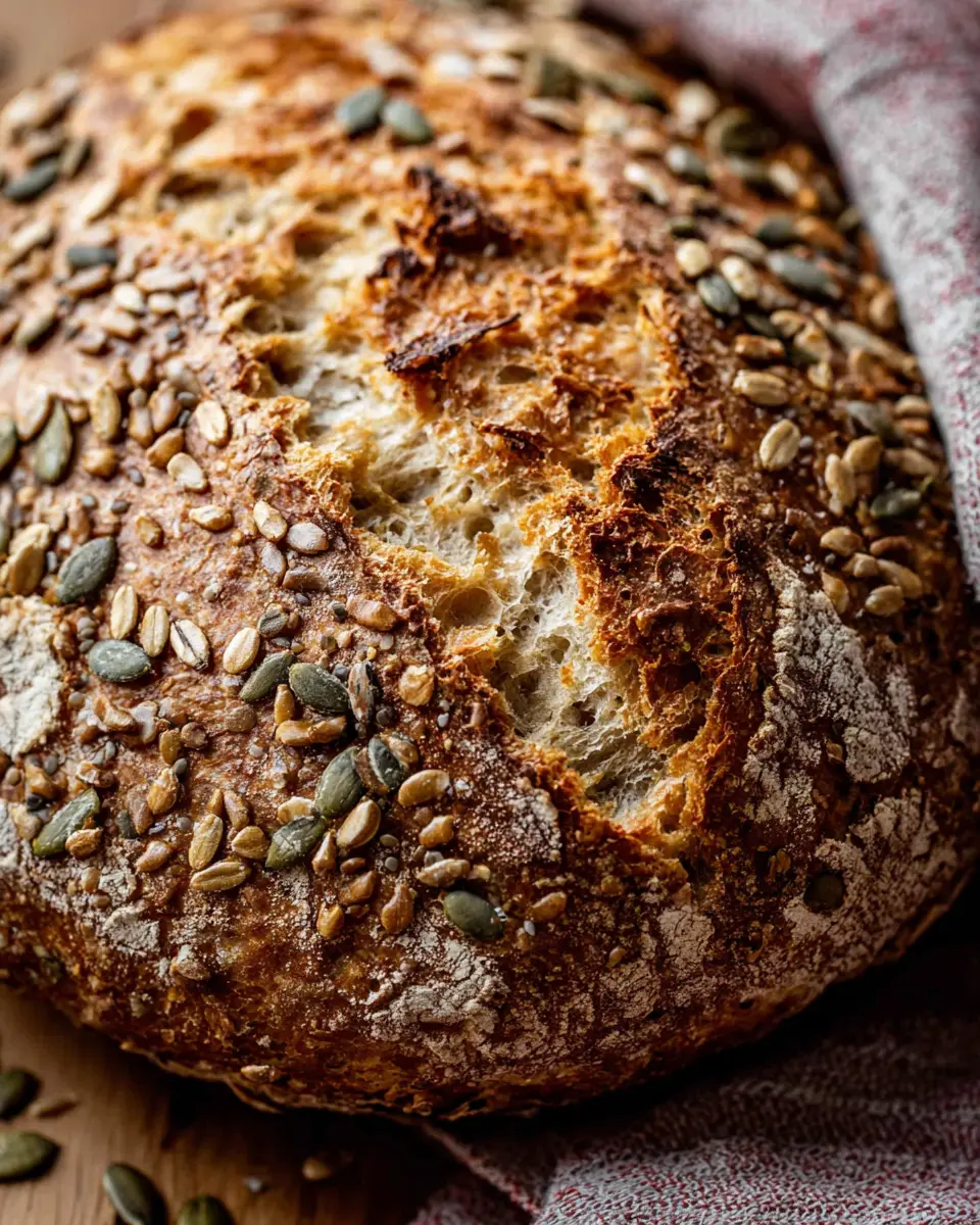 Absolutely! The beauty of no knead seeded oat bread is its versatility. You can swap out seeds based on your taste preferences or what you have on hand. For example, consider using chia seeds instead of flax seeds or adding poppy seeds for an extra crunch. If you don’t have bread flour, all-purpose flour works in a pinch, though it may slightly alter the texture.
