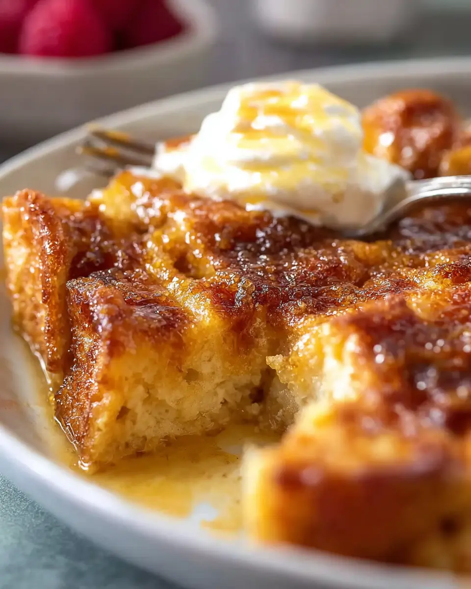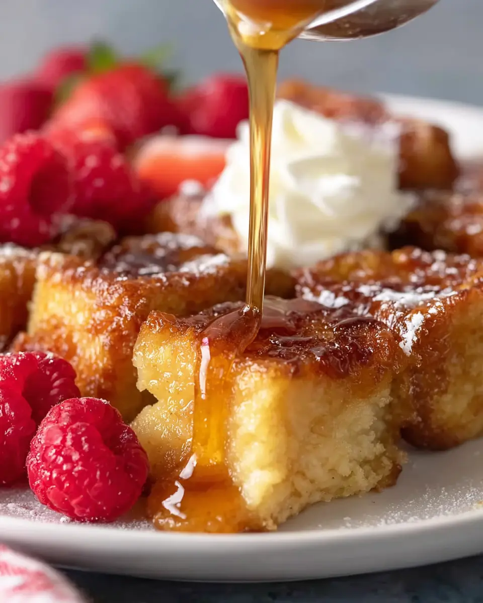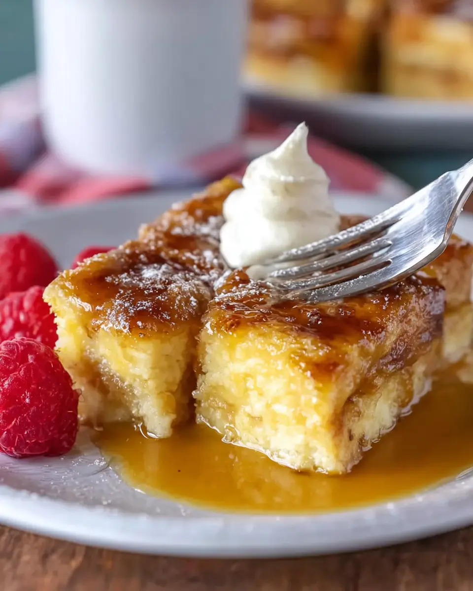 Imagine the delight of pulling a golden, bubbly bake from the oven, topped with a caramelized sugar crust. As you slice into it, you’ll find layers of fluffy bread soaked in a dreamy custard mixture. Serve it warm, accompanied by sweetened whipped cream and fresh berries for a breakfast experience that’s guaranteed to impress.