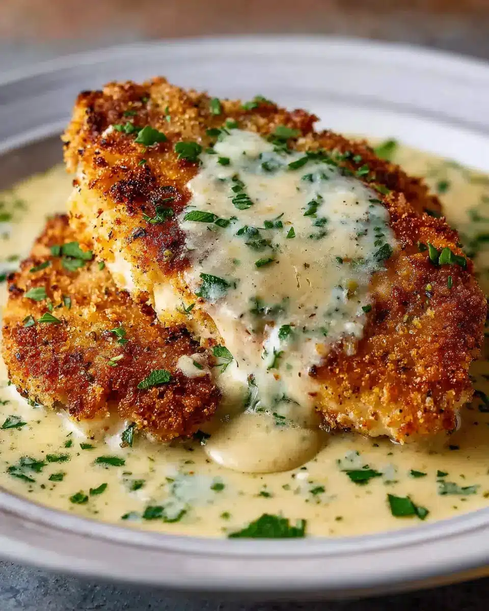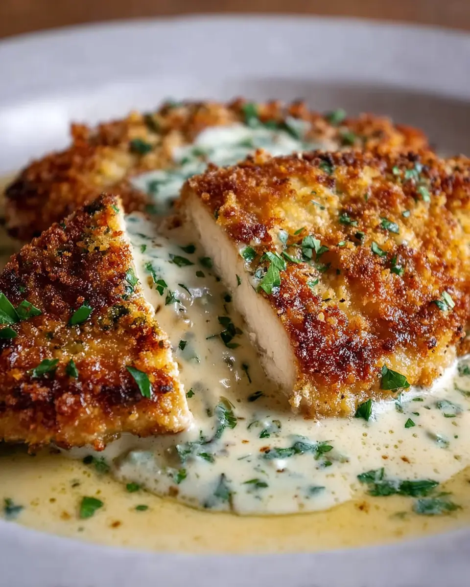 Parmesan Crusted Chicken with Creamy Garlic Sauce