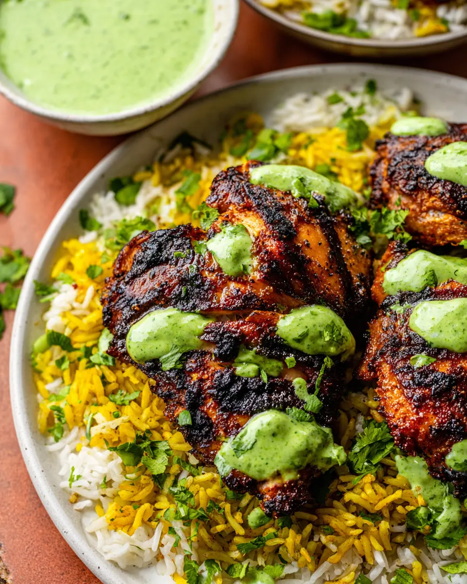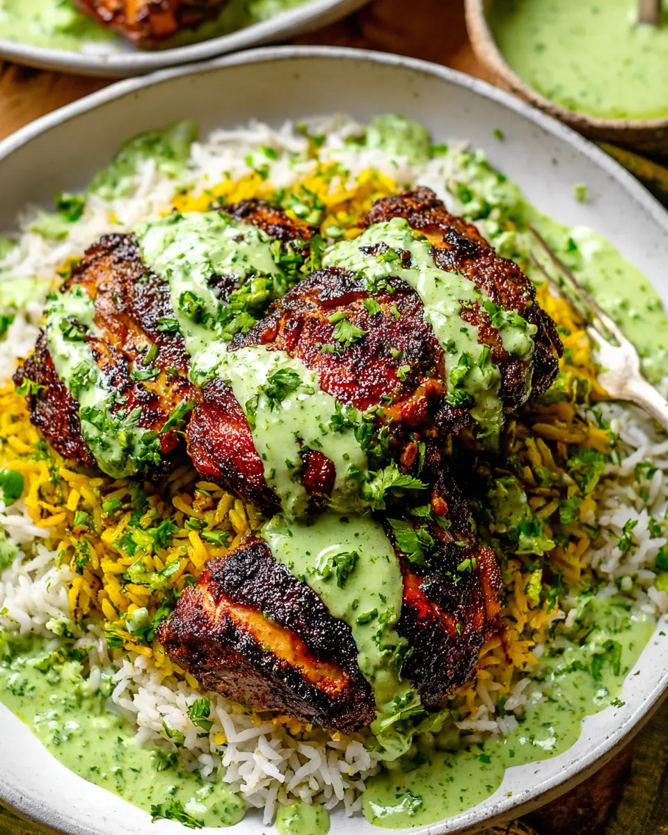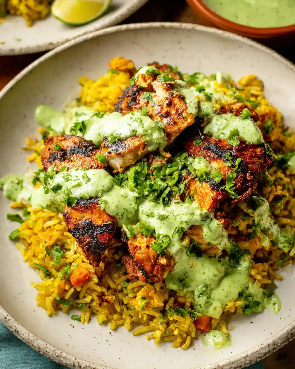 Absolutely! You can marinate the chicken a day in advance to enhance its flavors. The rice can be cooked a few hours before serving and reheated gently. The green sauce can also be made ahead of time; just store it in the fridge for up to a week! This makes it easier to whip up a fantastic dinner even on a busy night.