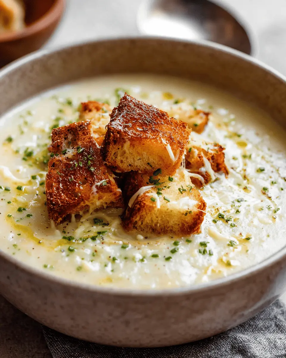 Imagine curling up on your couch with a steaming bowl of this soup, topped off with crispy grilled cheese croutons. It's an experience worth savoring! Not only is it easy to make, but it can also be customized. Want it extra garlicky? Go ahead and double the garlic! From busy weeknights to cozy gatherings, this soup stands out as a perfect choice for young professionals looking for both ease and elegance in their meals.
