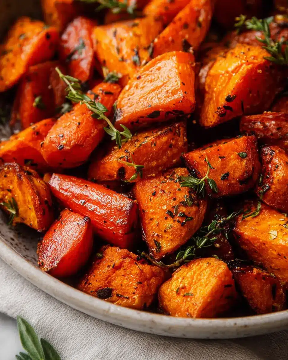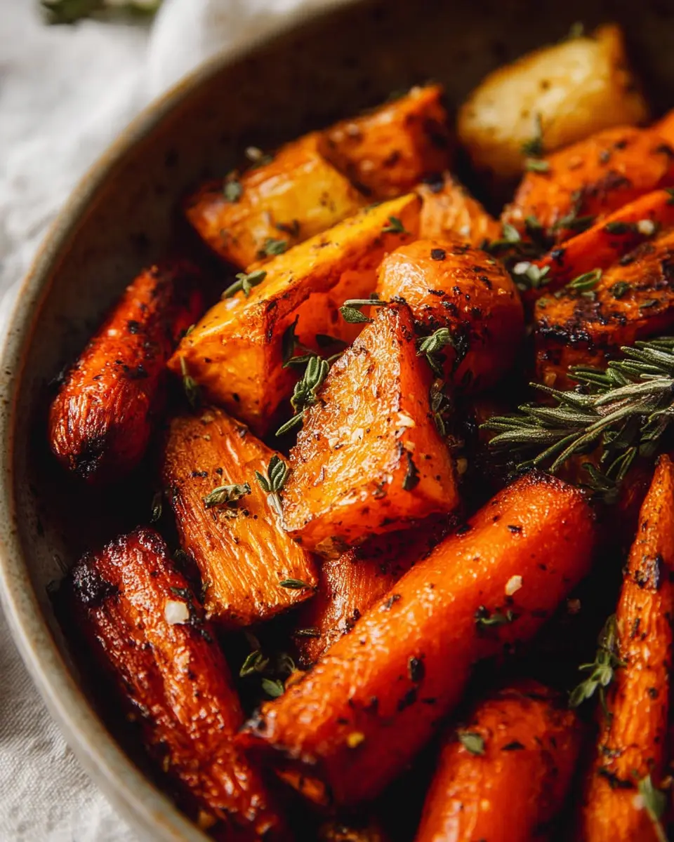 Why are roasted sweet potatoes & carrots a game-changer? For starters, they’re incredibly easy to prepare. With just 15 minutes of active prep time, you can have a warming dish in the oven while you tackle other tasks on your to-do list. The sweet and savory combination of maple syrup, cinnamon, and fresh herbs like rosemary and thyme means each bite is bursting with flavor. Plus, these veggies are budget-friendly and versatile, making them a staple for meal prepping.