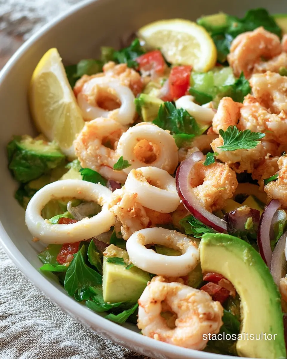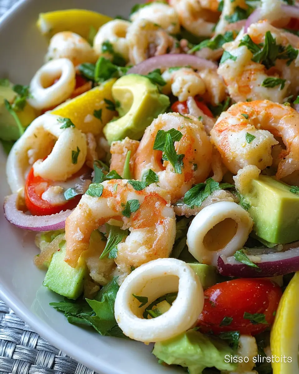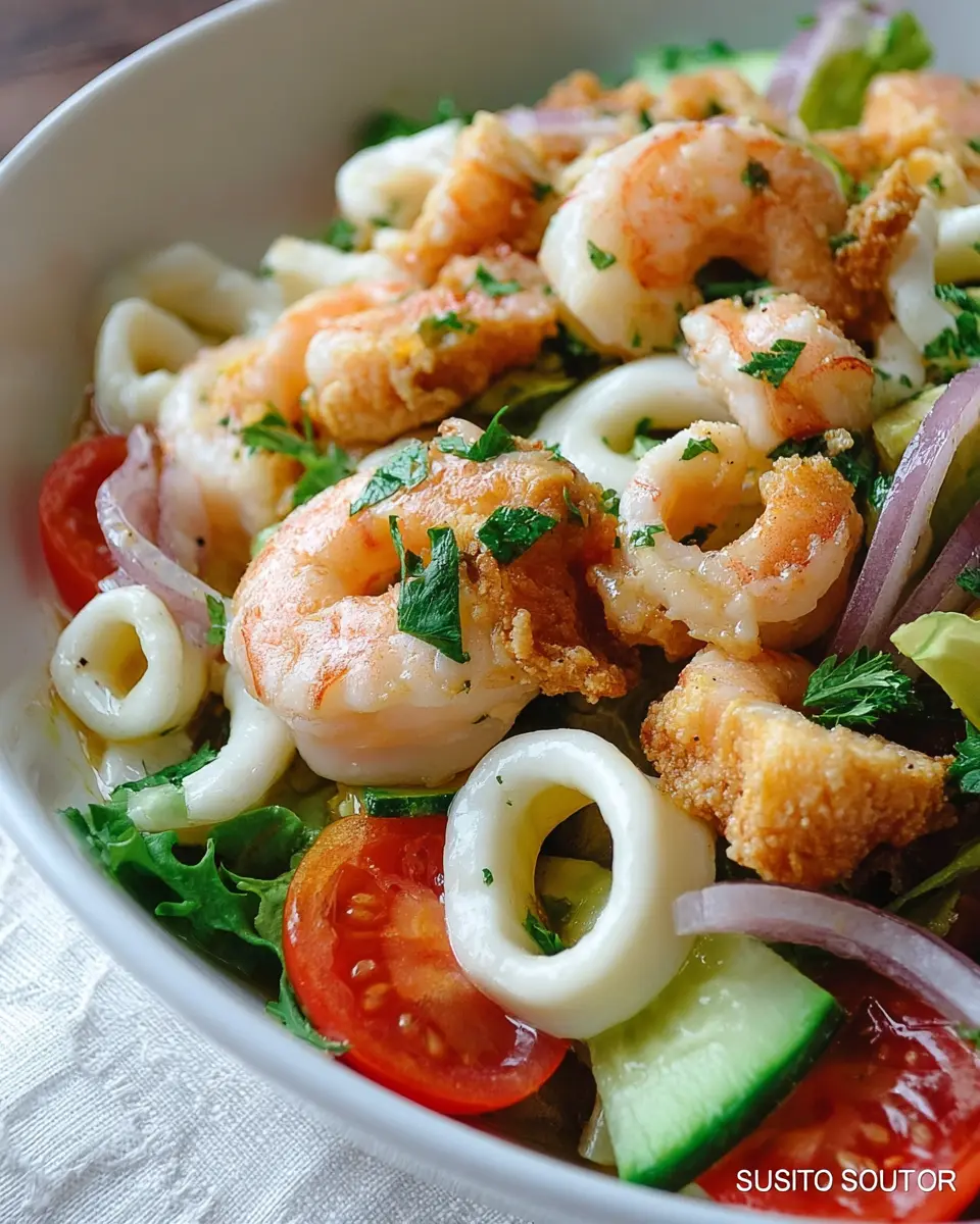 Mix these ingredients well, and watch your shrimp and calamari salad come to life with vibrant tastes!