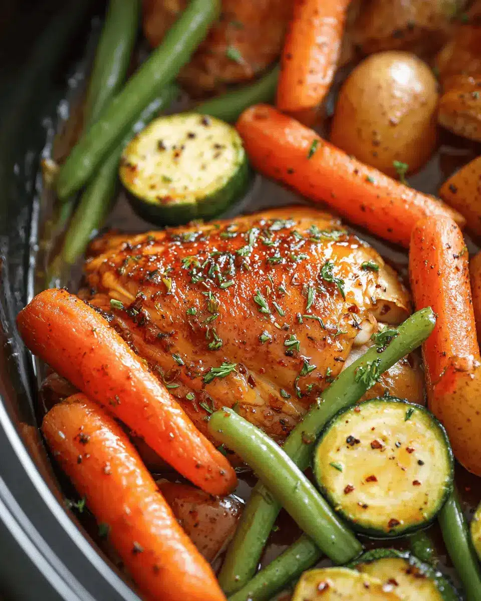Don’t forget to add the green beans in the last 30 minutes of cooking. They should stay vibrant and slightly crisp, providing a delightful contrast to the tender chicken and veggies.