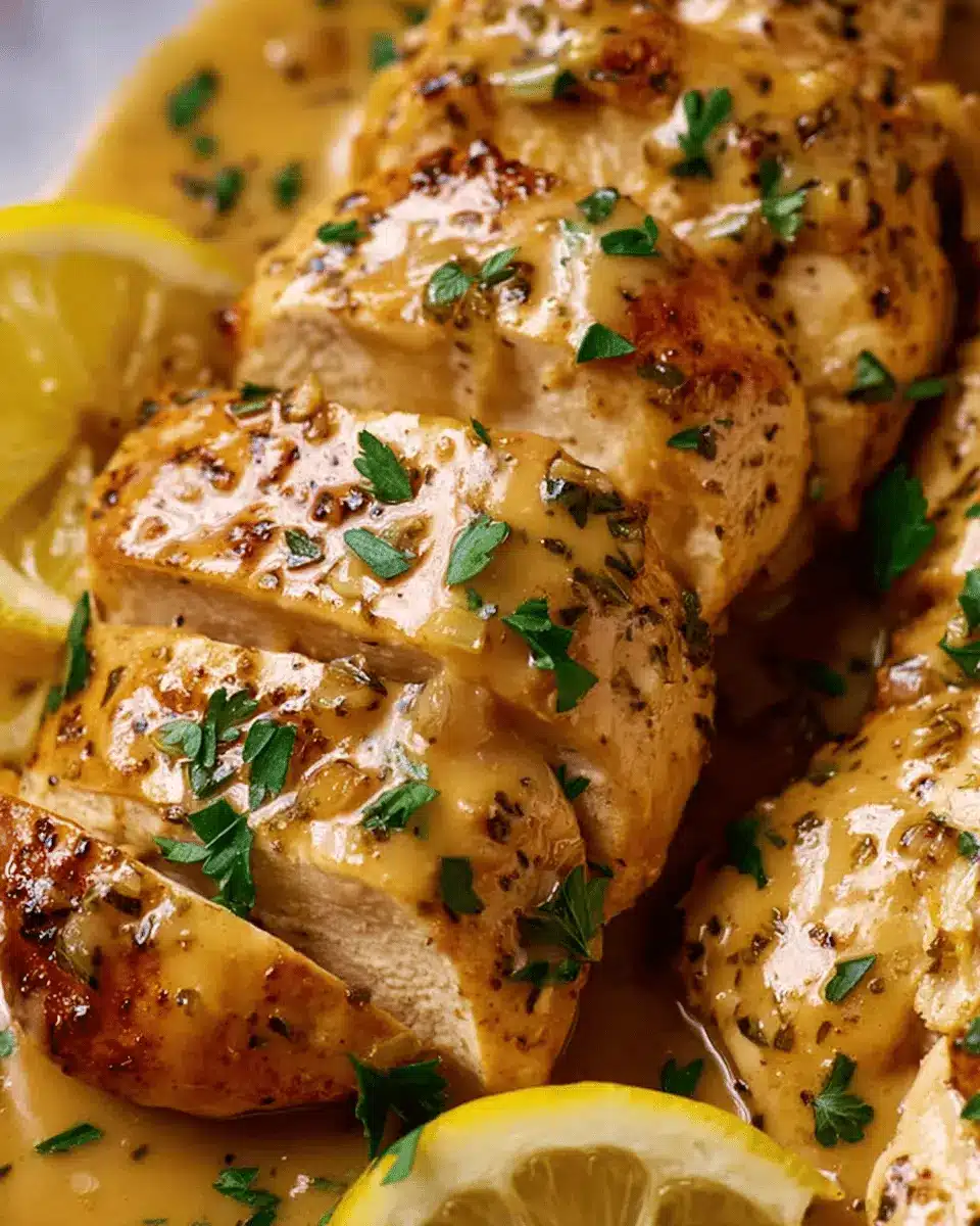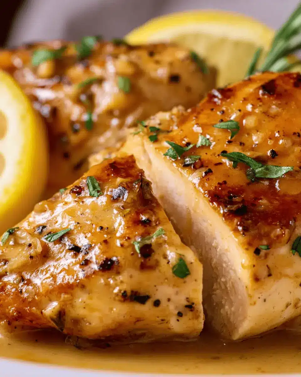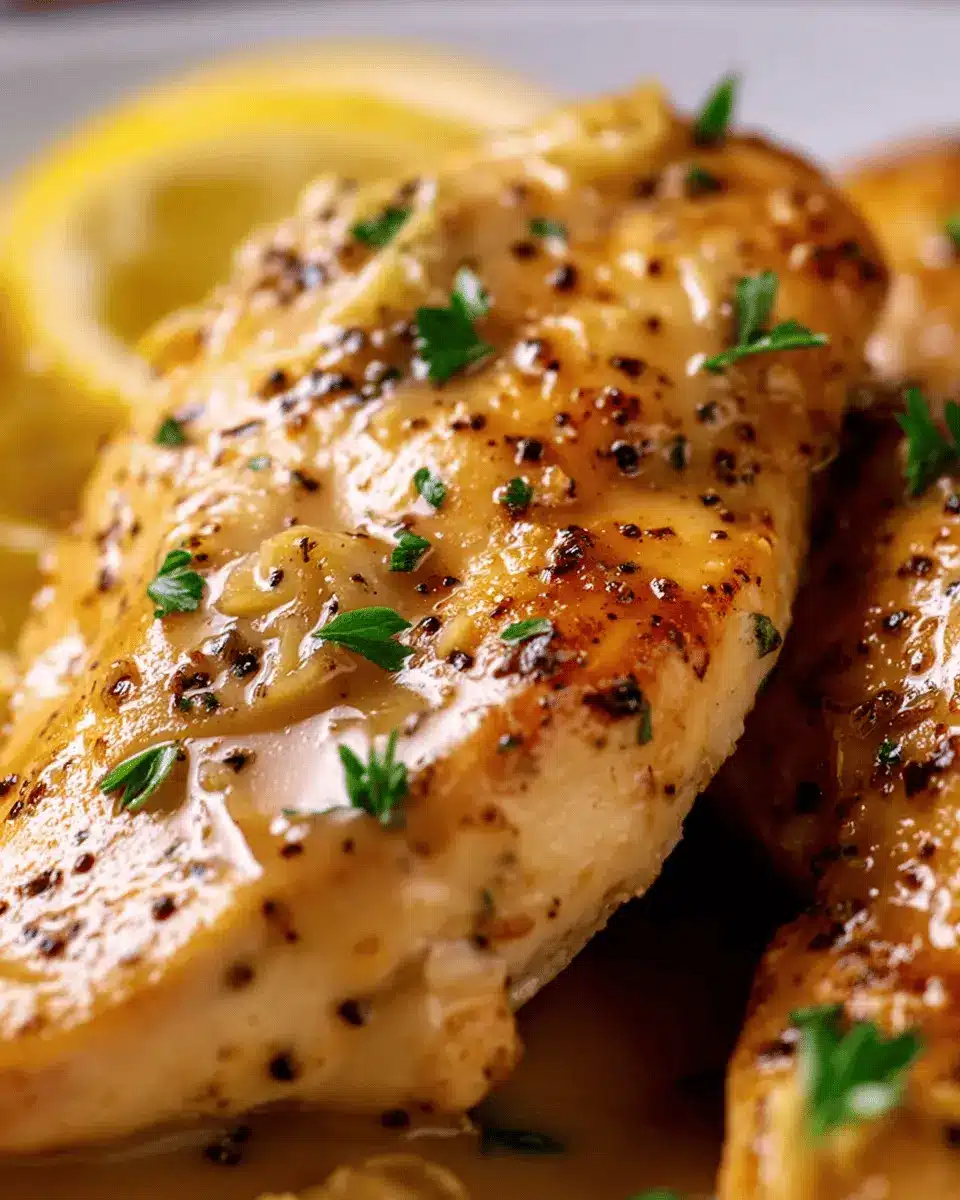 Mix together 2 tablespoons of unsalted butter and 2 tablespoons of all-purpose flour in a small bowl, rubbing them together with your fingers until well combined. Add this to the boiling liquid, whisking constantly until it thickens beautifully—this will take about 3 to 4 minutes. Once thickened, pour the sauce over the chicken breast and don’t forget to sprinkle some chopped fresh parsley on top for a pop of color and freshness. Voilà! Your slow-cooker lemon-garlic chicken breast is now ready to impress. Serve it up and enjoy the compliments!