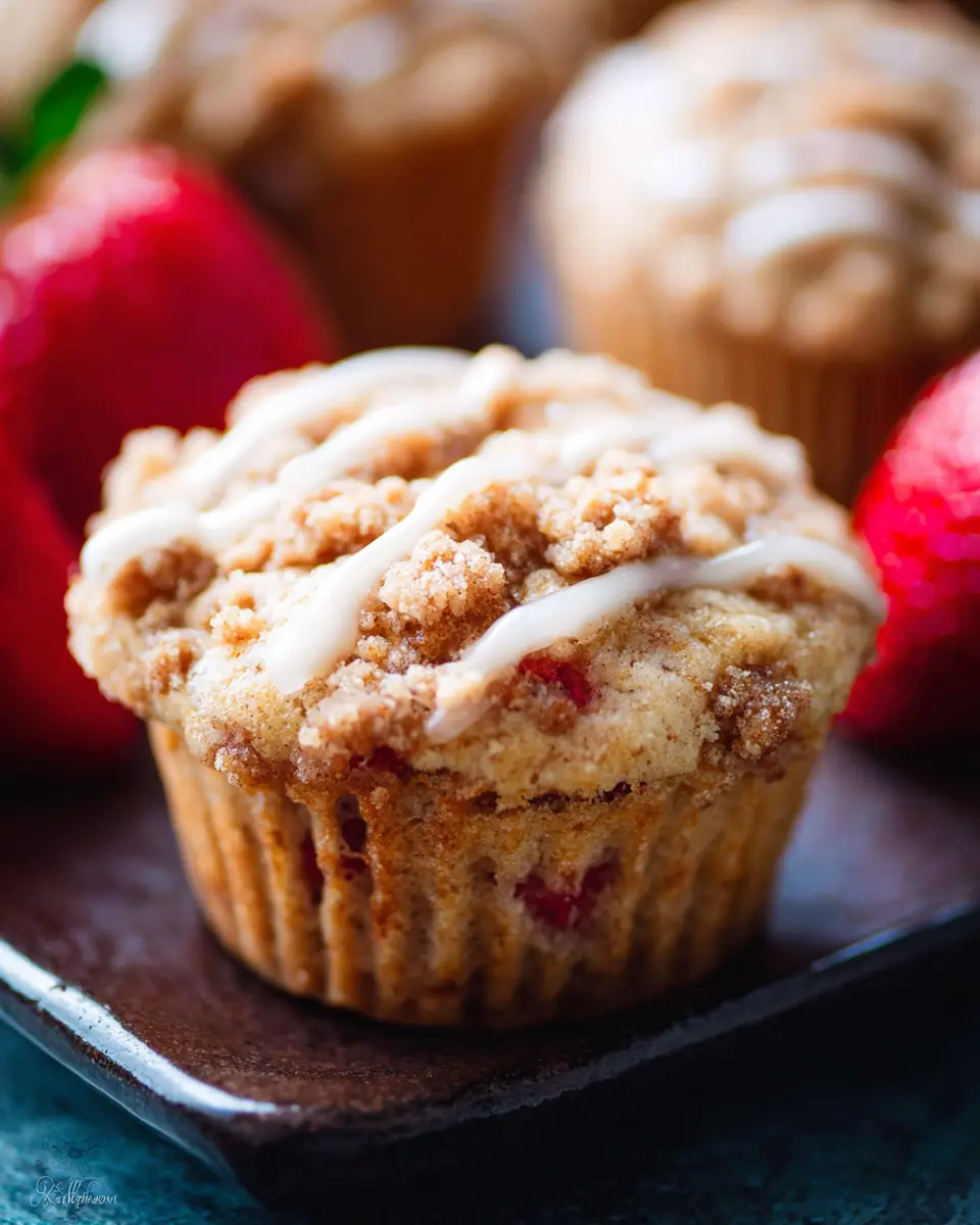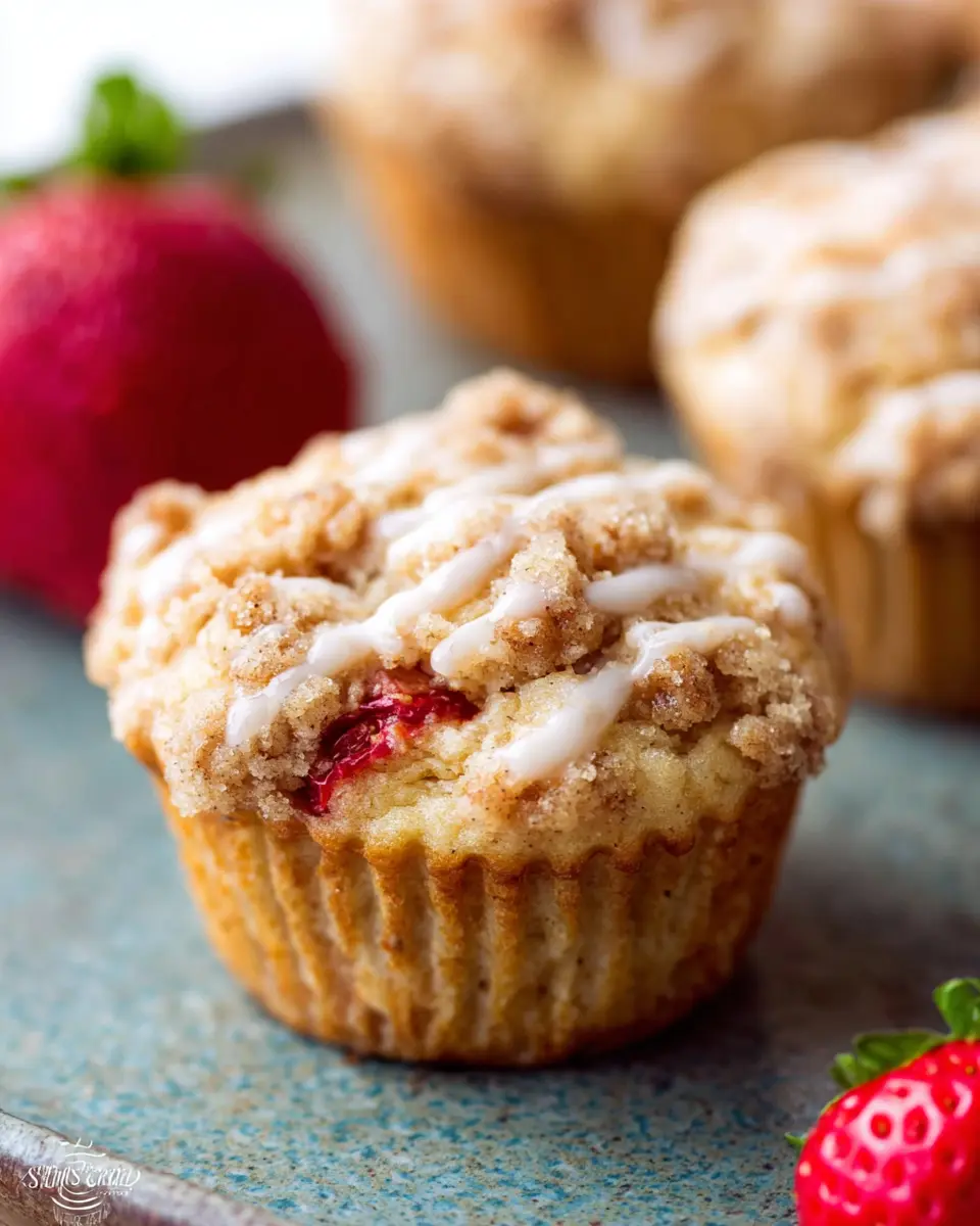 Not only are these muffins incredibly simple to make, but they'll also fill your kitchen with the irresistible aroma of baked goods that will make your neighbors jealous! Fresh strawberries bring a touch of sweetness and vibrant color, making these muffins not just tasty but also a feast for the eyes. Best of all, you can personalize them by adding your favorite toppings or spices, giving you the freedom to be creative in the kitchen.