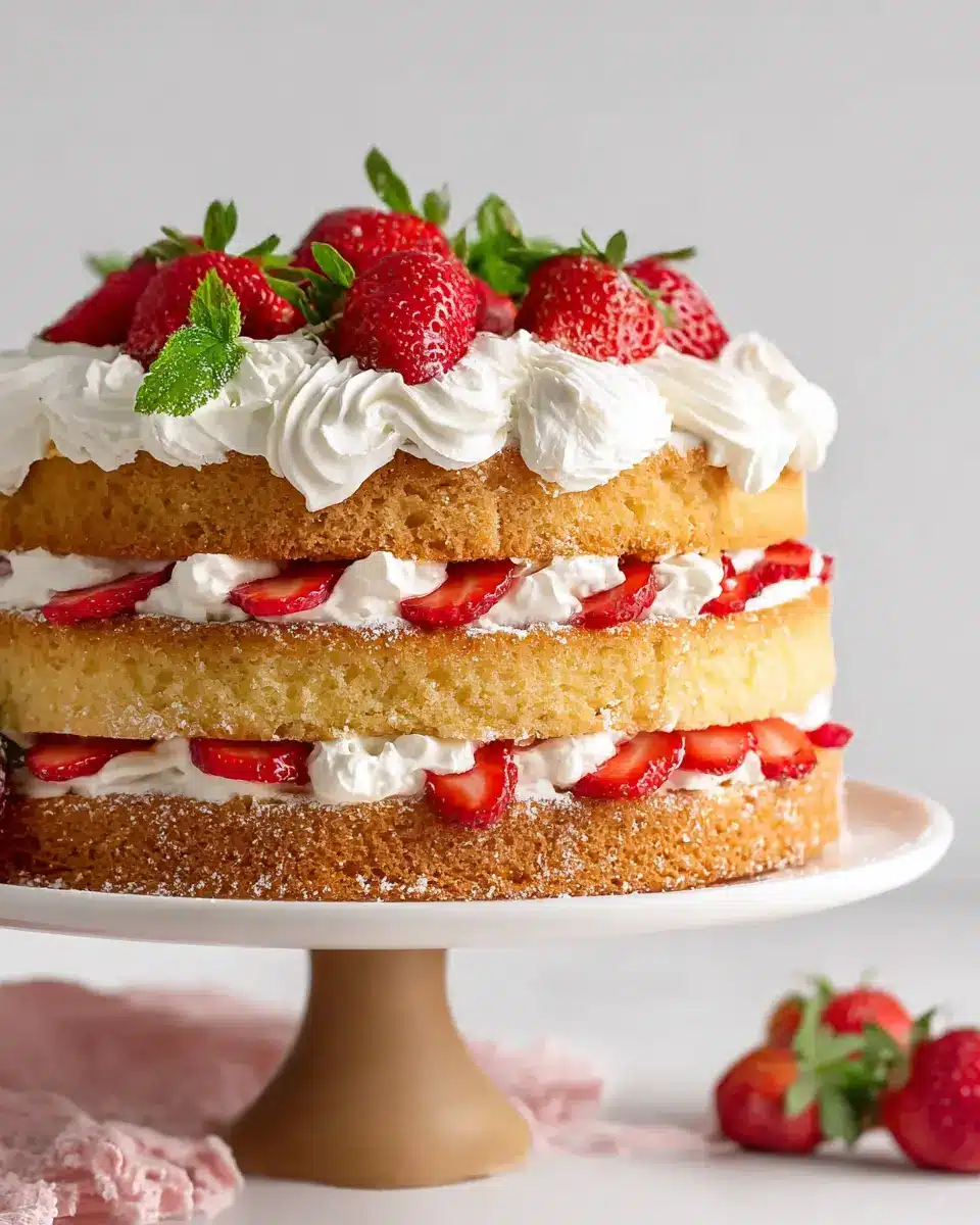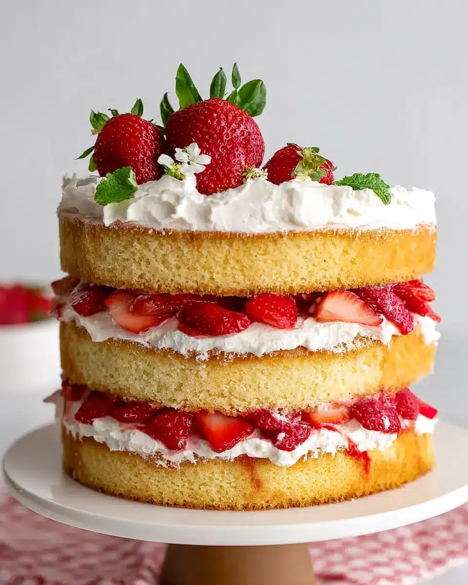After assembling, pop your cake into the refrigerator for at least 30 minutes. This chilling period allows the flavors to meld perfectly, ensuring each slice is a harmonious blend. When you’re ready to serve, carefully slice the strawberry shortcake cake and enjoy the delightful layers. The fresh strawberries paired with the luxurious mascarpone cream will surely impress your guests!