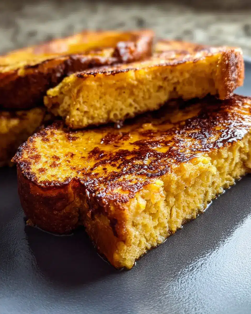 Once your skillet is hot, carefully place the soaked sourdough slices onto the skillet. Make sure they don’t overlap! Cook each side for about 3 to 4 minutes until they become golden brown and crispy. Adjust the heat if the outside browns too quickly—this ensures that the insides cook thoroughly without burning the exterior.